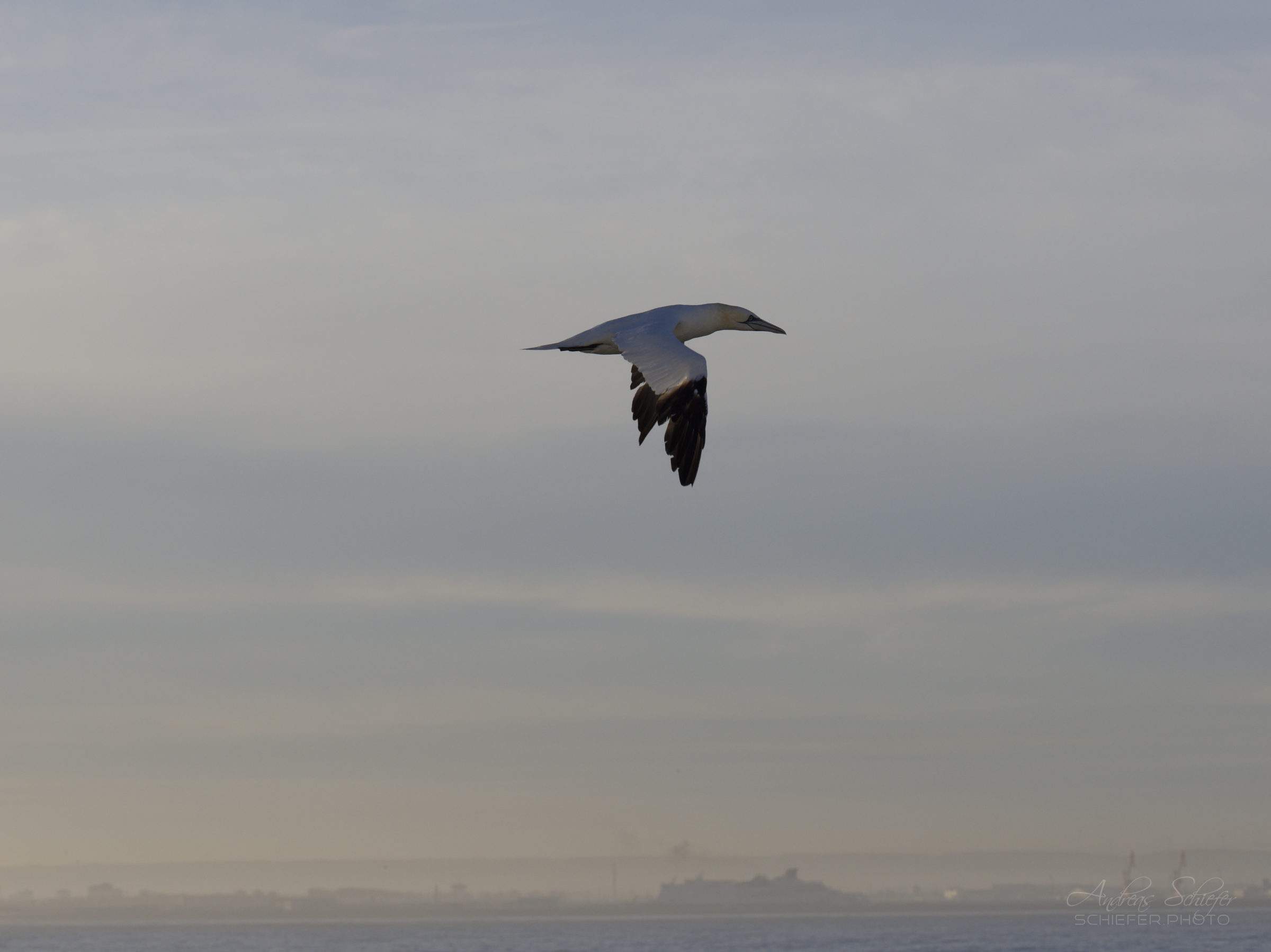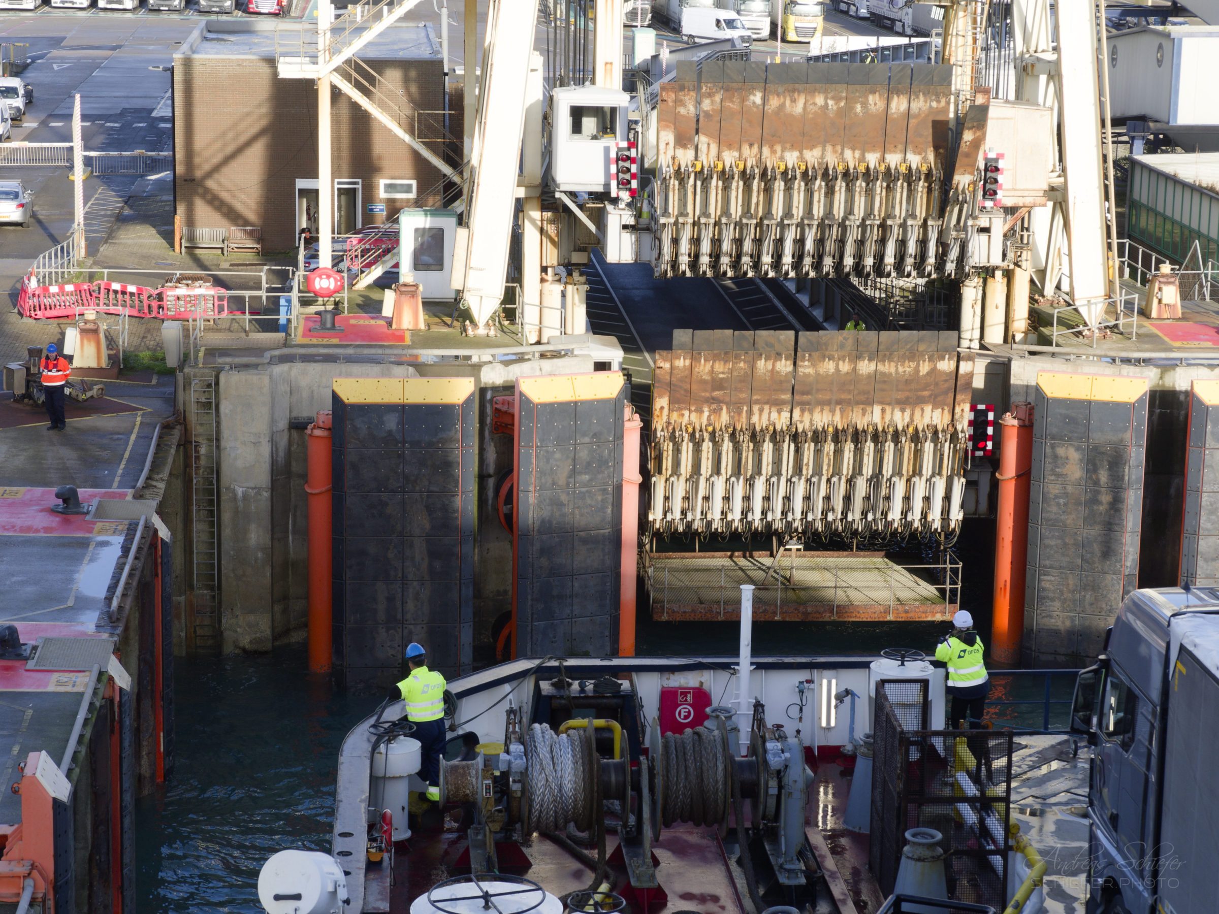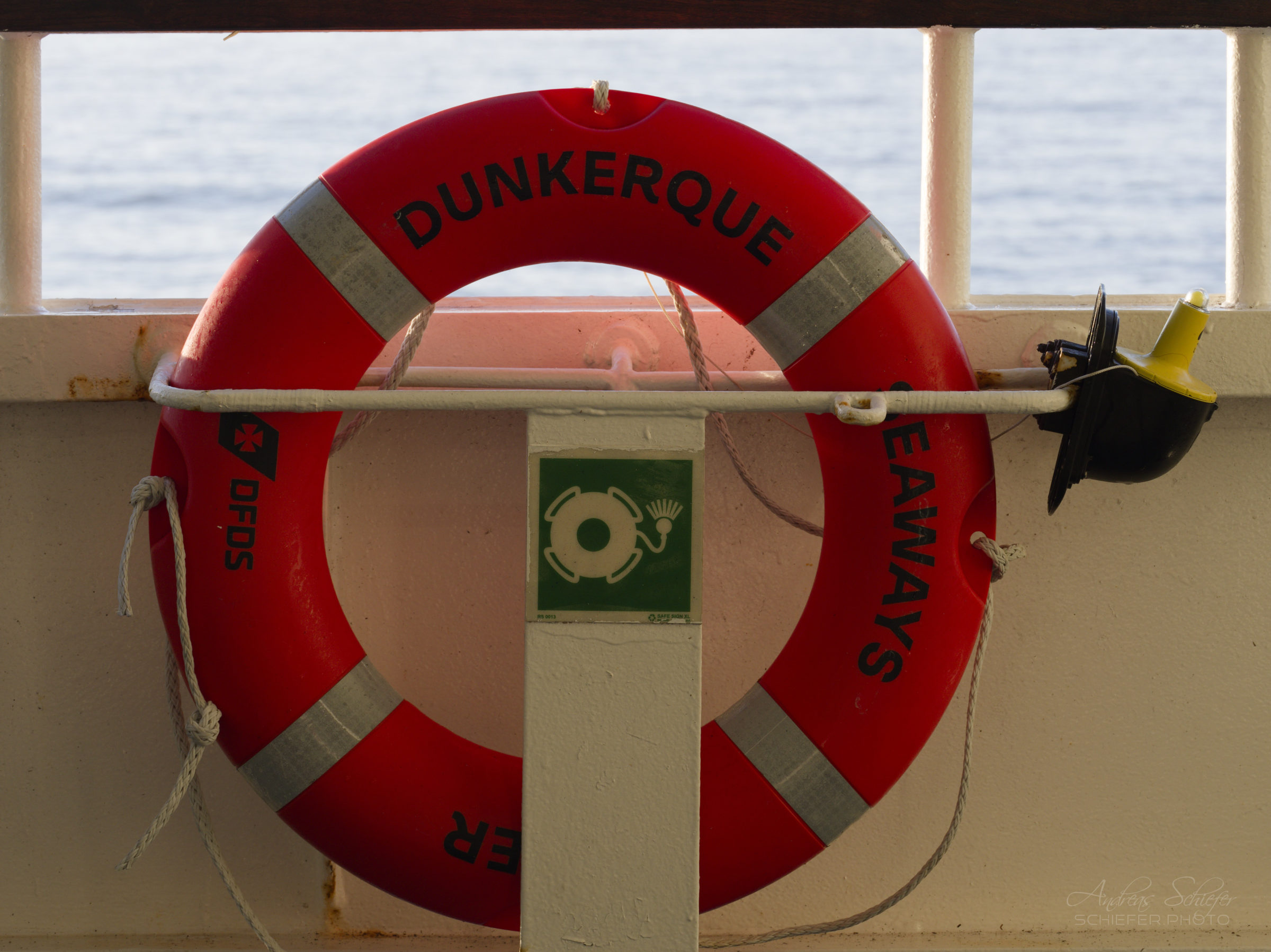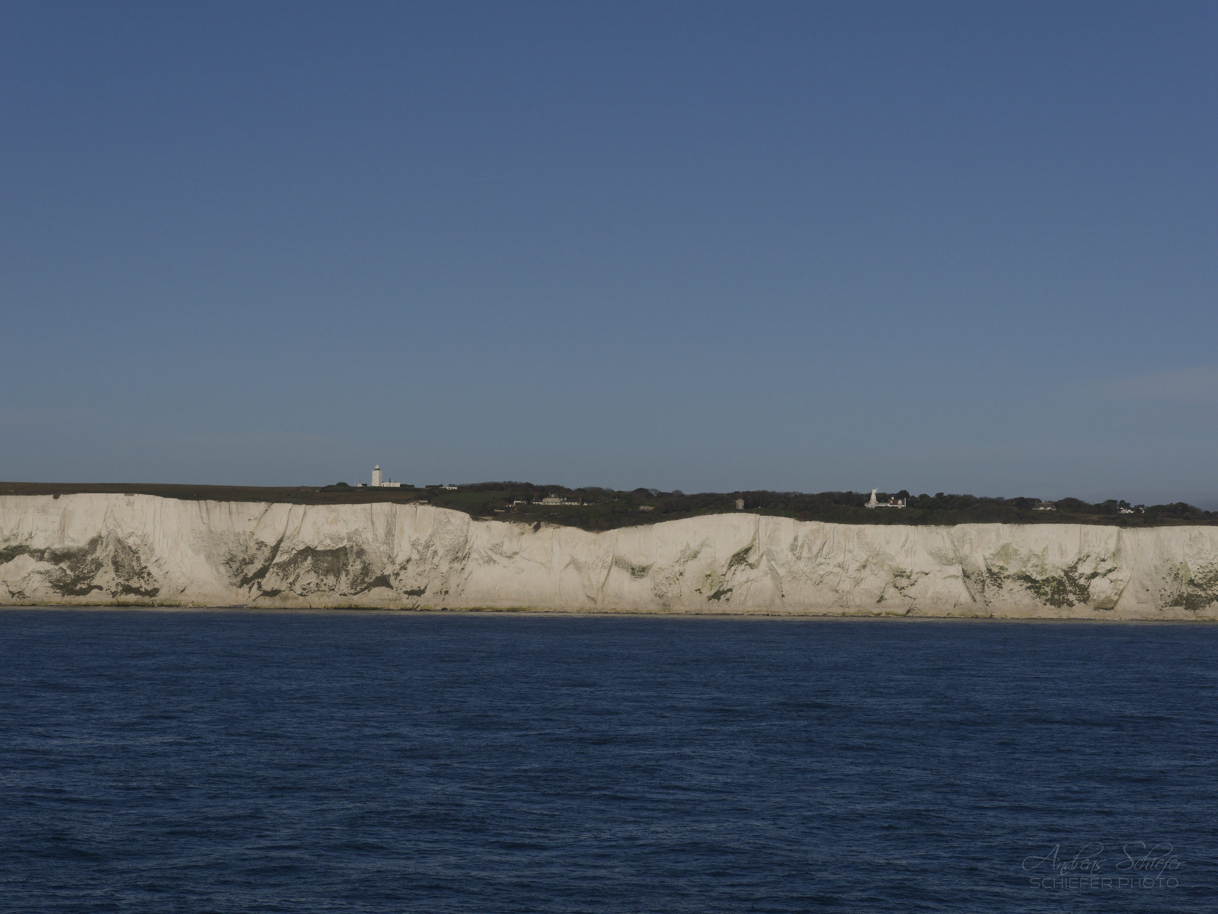 Ich ging raus und genoss die Seeluft. Die Sonne strahlte und nahm dem Wind die Kälte. Begleitet von Möven und anderen Seevögeln fuhren wir auf die Klippen von Dover zu. Während des Anlegens drängte sich eine Möwe ins Bild.