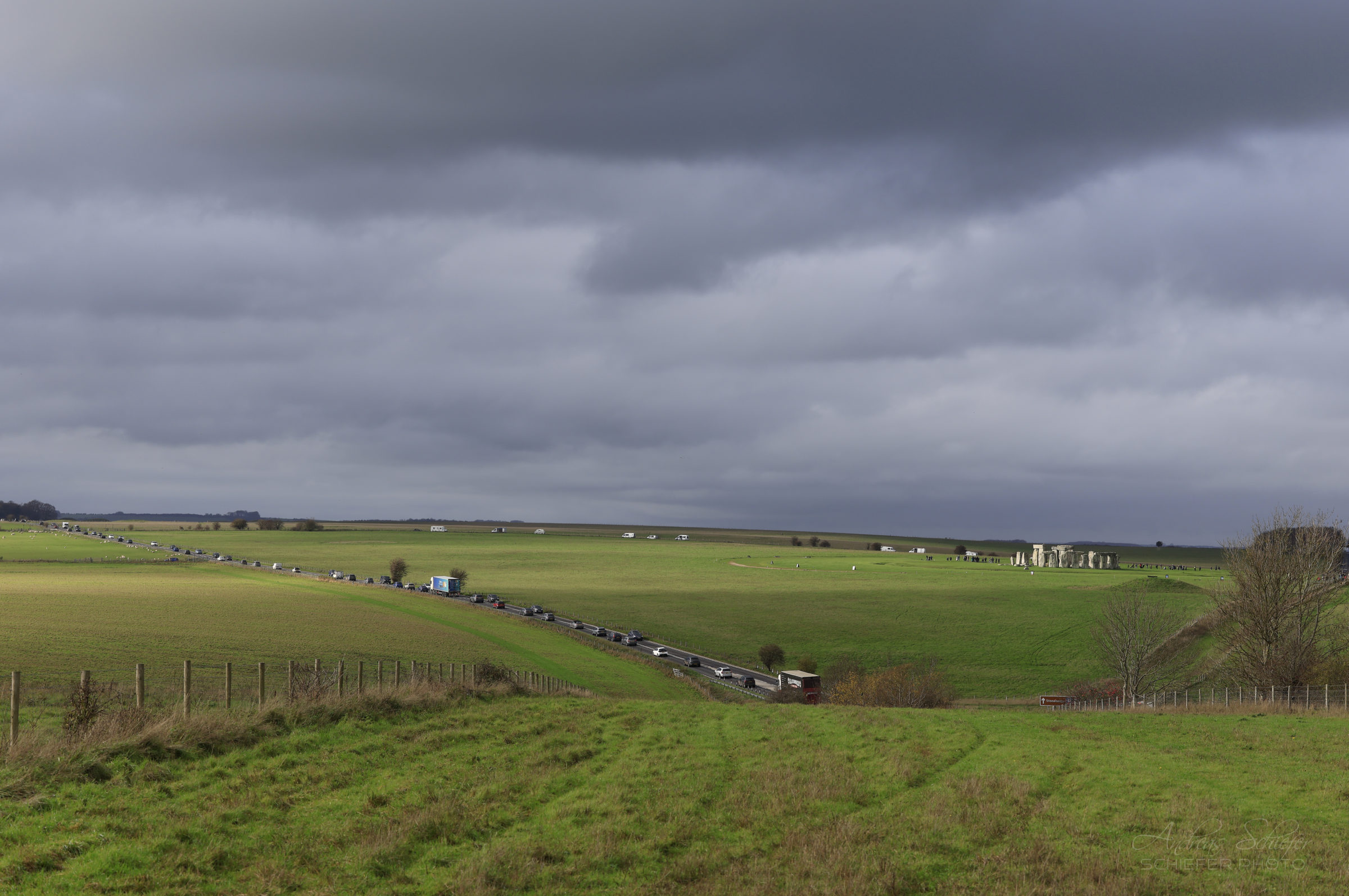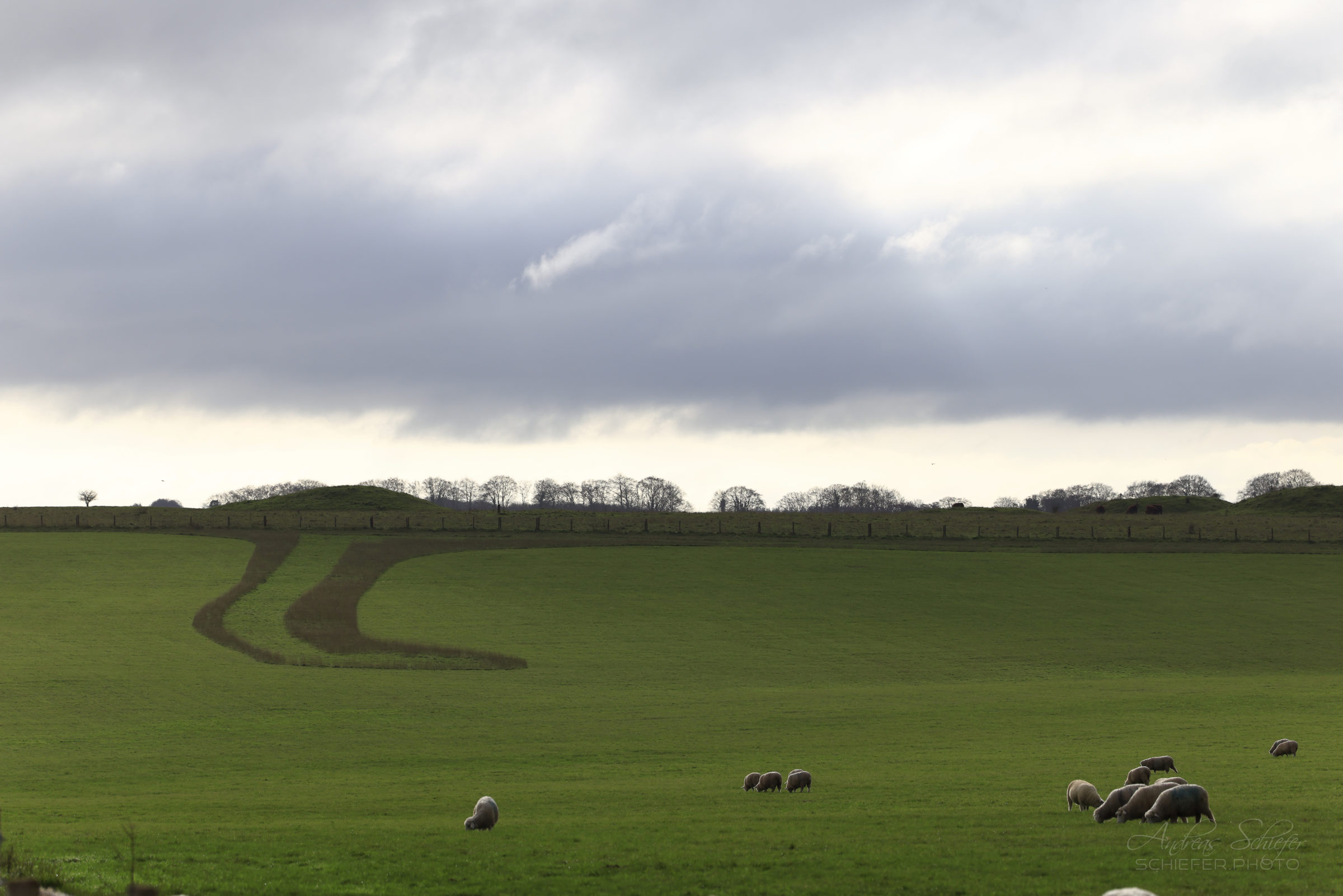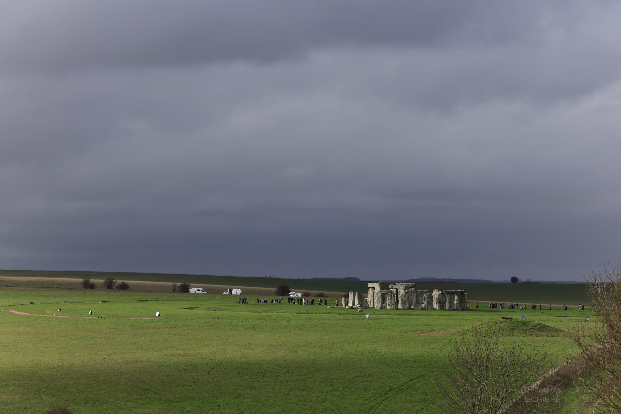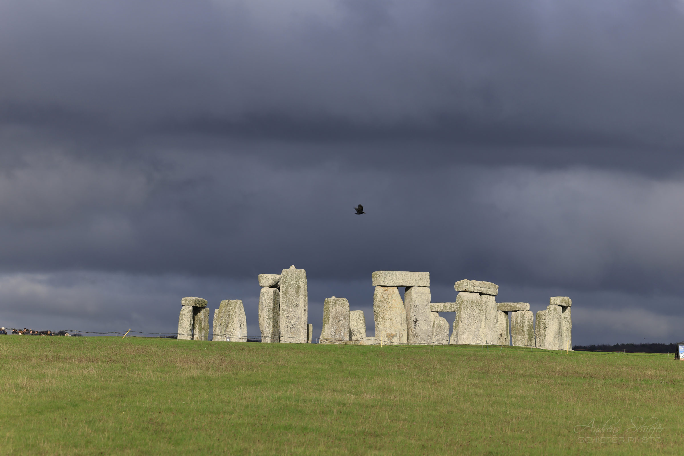 Auf geht die Reise nach Crantock. Als Zwischenziel ist Stonehenge anvisiert. Kurz vor Eintreffen berichtete unser Reiseleiter, dass wir dort sicher Stau haben würden. Denn das Monument ist von der Straße aus einsehbar. Und jeder meint, er müsse schön langsam fahren um ein paar Fotos zu schießen. Wir nutzten eine Feldeinfahrt um anzuhalten, ohne den Verkehr zu blockieren. Gerade tat sich eine herrliche Lichtstimmung auf. Dunkler grauer Himmel, die Sonne guckte kurz durch und ließ die Steine leuchten. Krähen flogen über das Feld und mischten sich in das Bild.