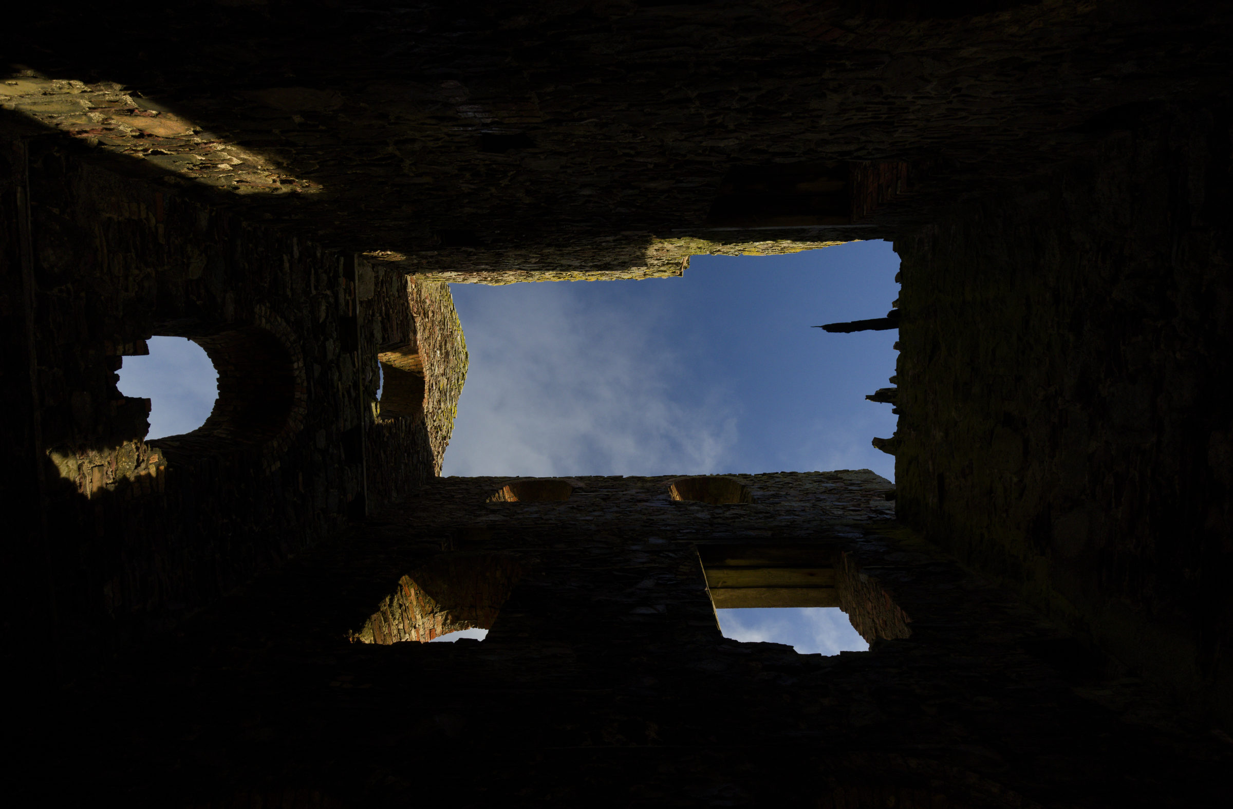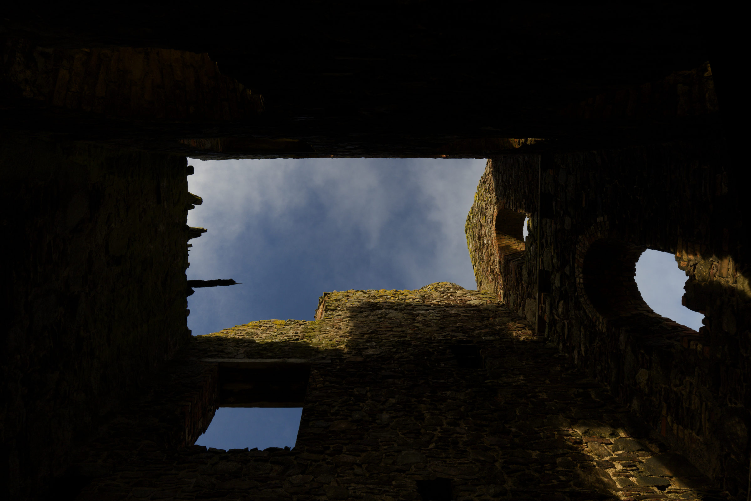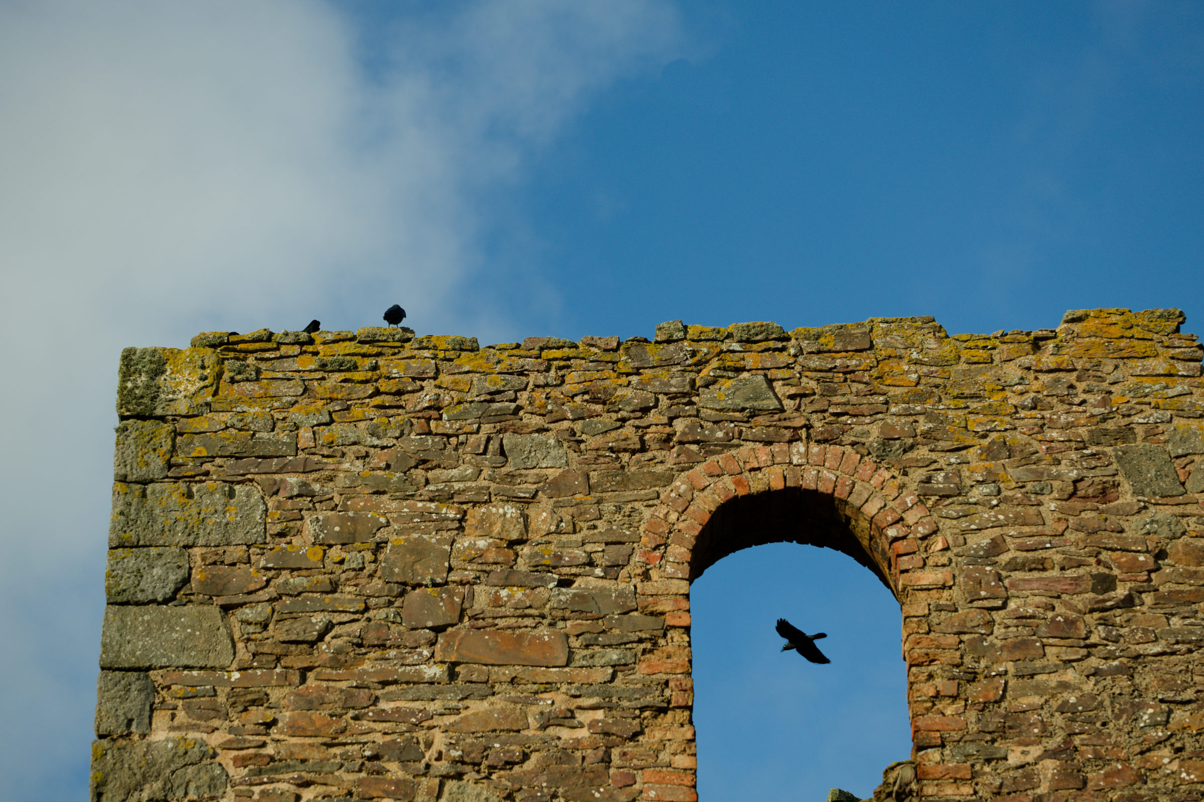 Nach dem Strand ging es zu den Ruinen von St. Agnes. Nicht besonders groß, aber dank der Lichtwechsel sehr interessant. Bevor wir vom Parkplatz losgingen, sahen wir einen mächtigen Regenschauer aufs Land ziehen. Der erreichte uns gerade beim Ausstieg, so dass wir erst mal im Transit in Deckung blieben. Als der Regen nachließ gingen wir los. Später kam noch der ein oder andere Schauer. Da der Wind aber sehr stark war, flogen die Regentropfen waagerecht durch die Luft. So konnten wir uns hinter einer Wand „unterstellen“.