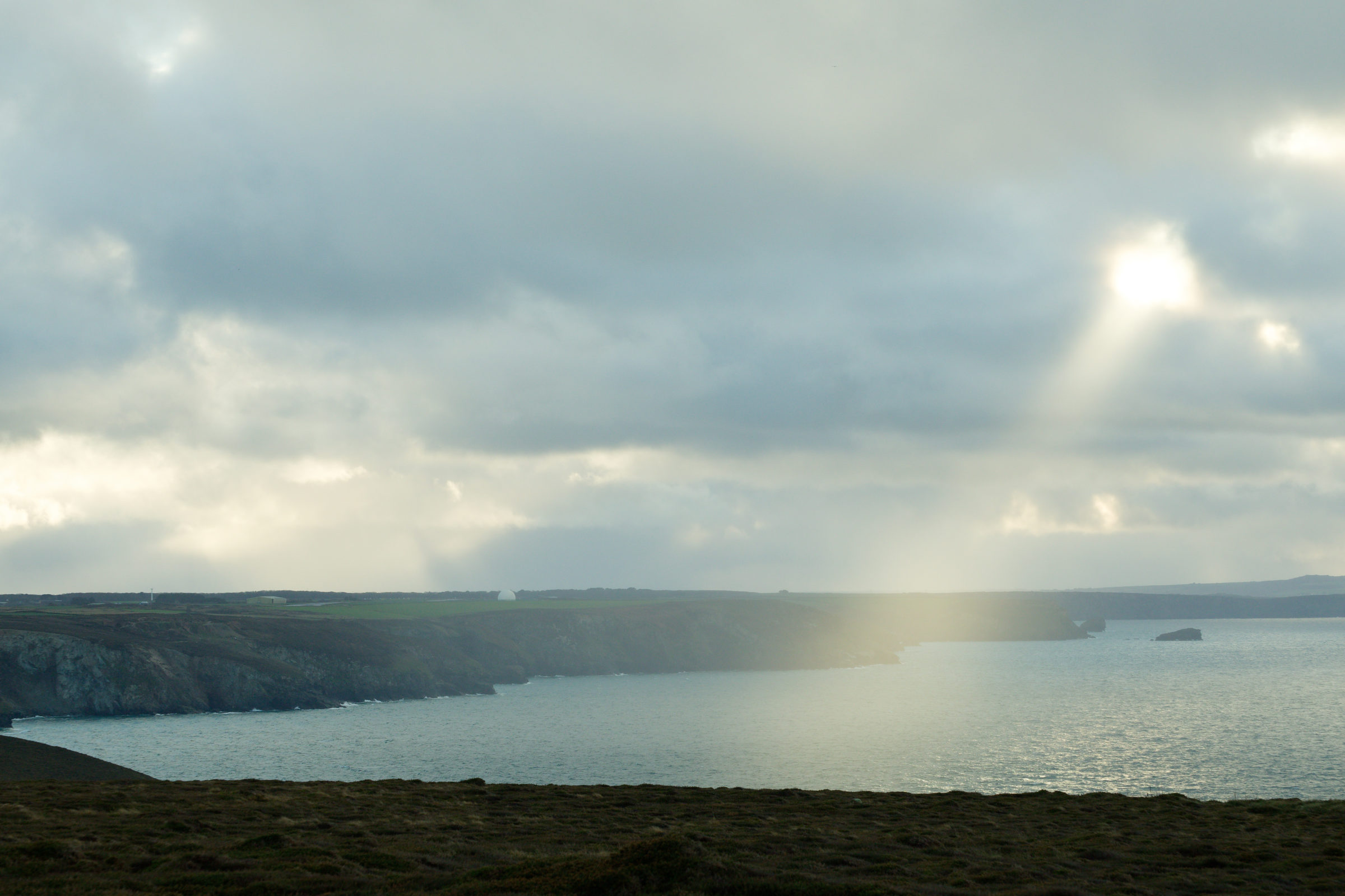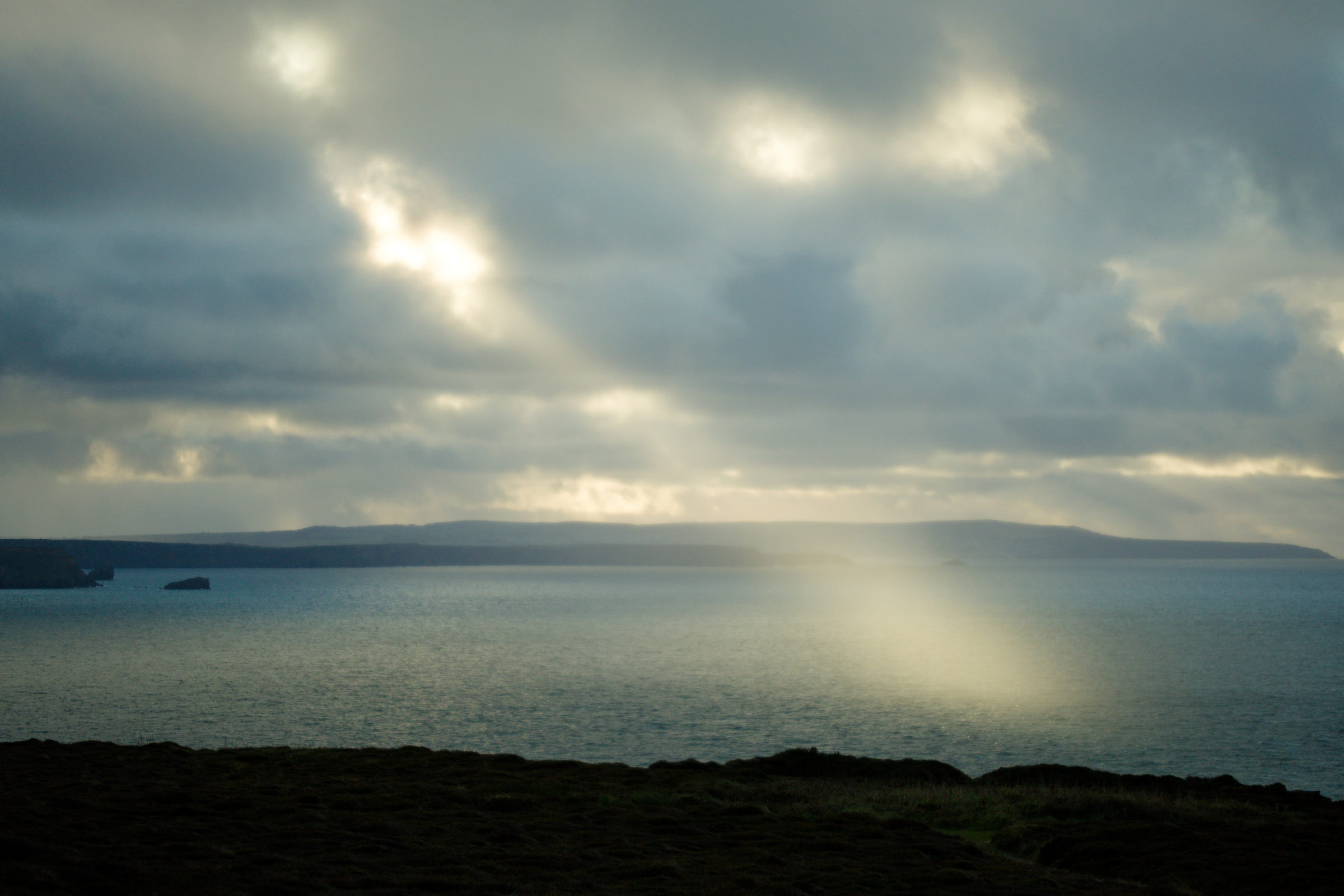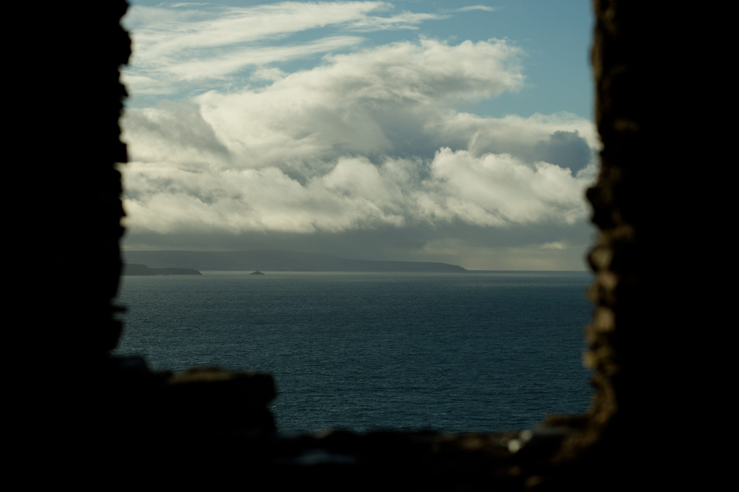 Nach dem Strand ging es zu den Ruinen von St. Agnes. Nicht besonders groß, aber dank der Lichtwechsel sehr interessant. Bevor wir vom Parkplatz losgingen, sahen wir einen mächtigen Regenschauer aufs Land ziehen. Der erreichte uns gerade beim Ausstieg, so dass wir erst mal im Transit in Deckung blieben. Als der Regen nachließ gingen wir los. Später kam noch der ein oder andere Schauer. Da der Wind aber sehr stark war, flogen die Regentropfen waagerecht durch die Luft. So konnten wir uns hinter einer Wand „unterstellen“.