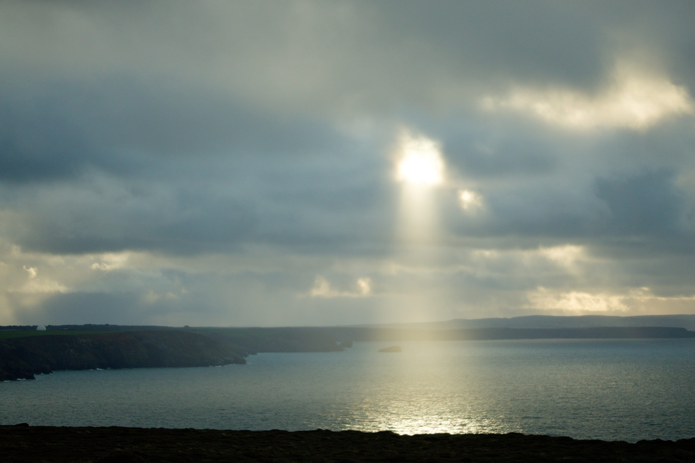 Vom Wind wurde die Sonne wie ein Suchscheinwerfer über das Meer geführt.